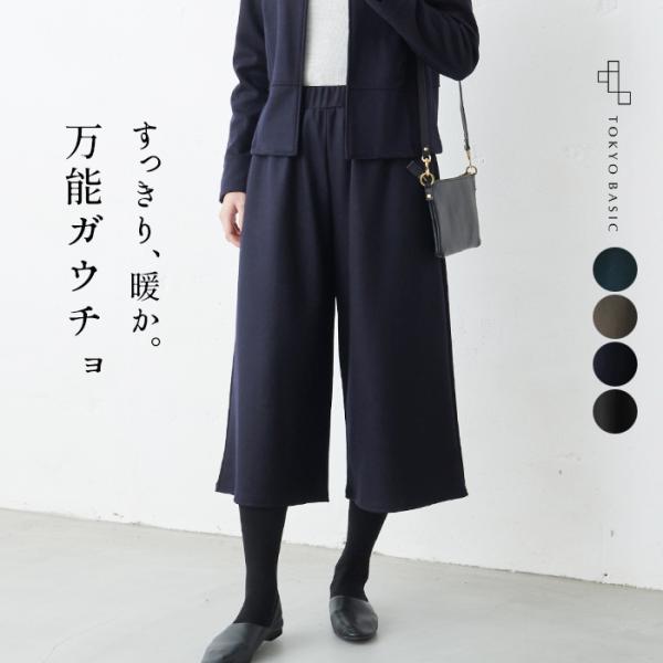 ガウチョパンツ 7分丈 40代 圧縮ウール100% ガウチョパンツ 日本製 暖かい 防寒