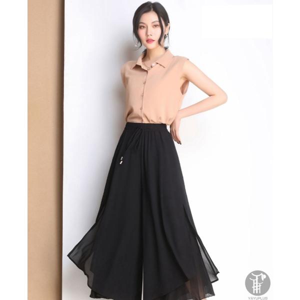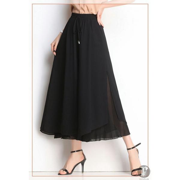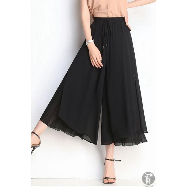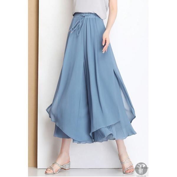 ガウチョパンツ ワイドパンツ レディース シフォン 裾プリーツ フレアパンツ ガウチョ パンツ ボトムス スカーチョ ゆったり