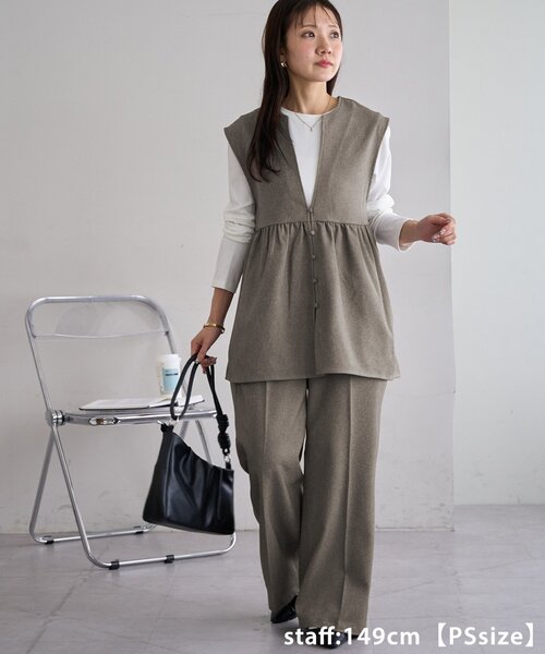 セットアップ 「新色追加!/WEB限定」ロンT付深Vベストセットアップ レディース