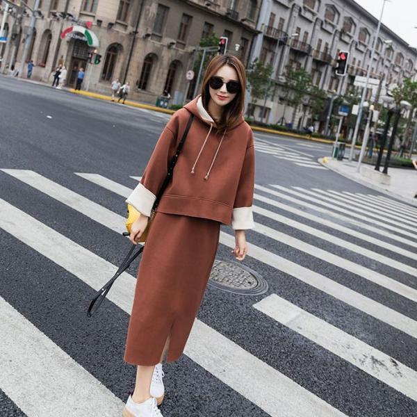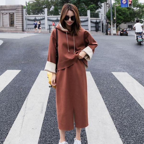 セットアップ フードパーカー フーディー 上下セット スカート 大きいサイズ ひざ下丈 長袖 トレンド オシャレ 可愛い ゆったり シンプル 送料無料
