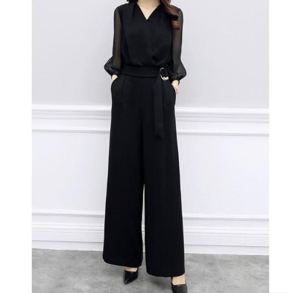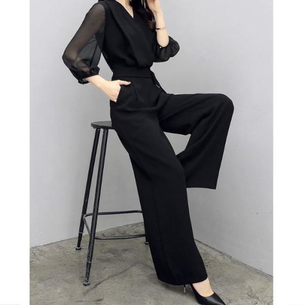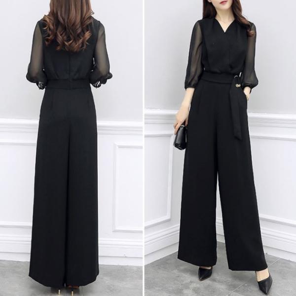 セットアップ レディース ドレス パンツ オールインワン ブラック 黒 五分袖 フォーマル 結婚式 二次会 入園式 卒園式 入学式 卒業式
