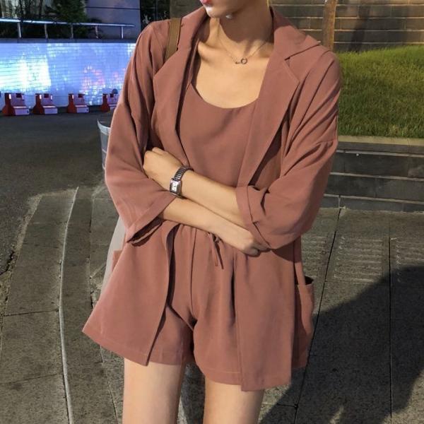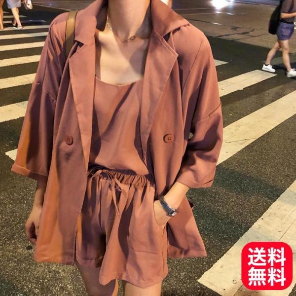 レディース セットアップ 3点セット ジャケット キャミソール ショートパンツ セットアップ 着回し 大人 カジュアル 送料無料