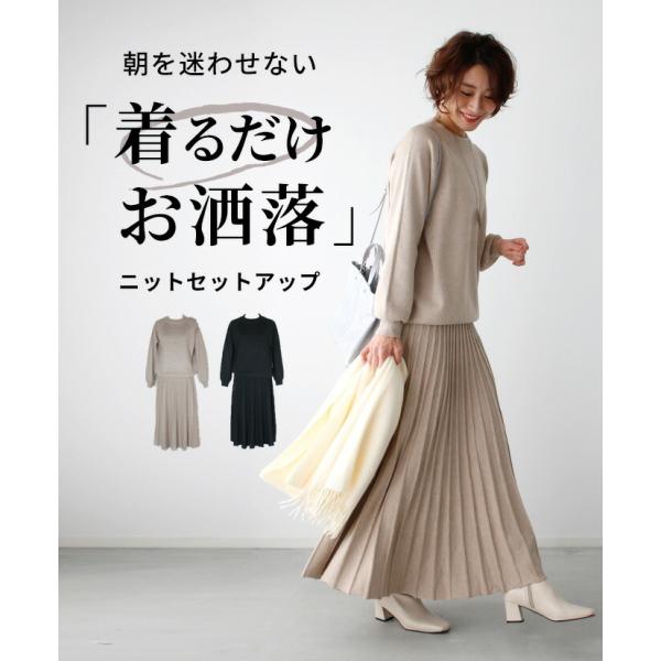 セットアップ スカート トップス レディース ニット ブラック プリーツ ファッション ベージュ セット ファッション 仕事 お仕事 オフィス