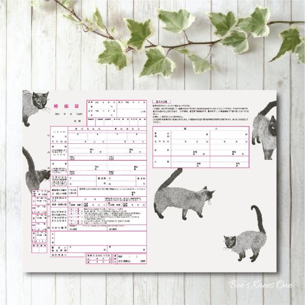 デザイン婚姻届『グレーの猫』 オリジナル婚姻届 役所に提出できる婚姻届け