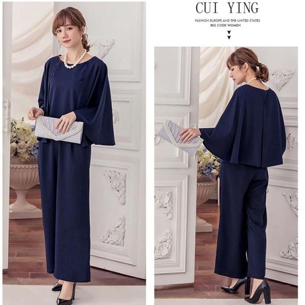 パンツドレス 結婚式 パーティードレス フォーマル ブラウス 大きいサイズ ドレス ケープ風 ワイドパンツ パーティードレス 20代 30代 40代 50代