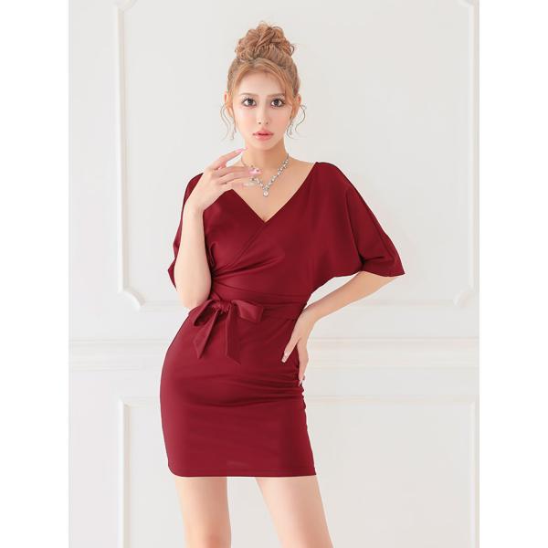 キャバドレス キャバ ドレス 袖あり 五分袖 シンプル ワンカラー タイト 膝丈ドレス Vネック ウエストリボン 激安 激安ドレス