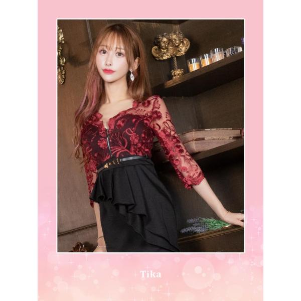 キャバ ドレス 刺繍 レース 花柄 ミニ ワンピース フリル セクシー ミニワンピース 袖あり 七分袖 大きいサイズ