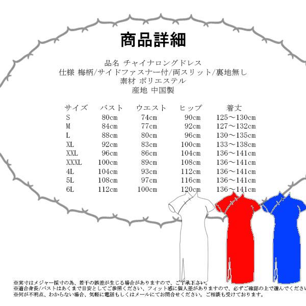 チャイナドレス ロング パーティードレス ロングドレス チャイナ服 大きいサイズ 半袖 梅柄 花柄 刺繍 ロング丈 コスプレ 衣装 セクシー China Dress 1007