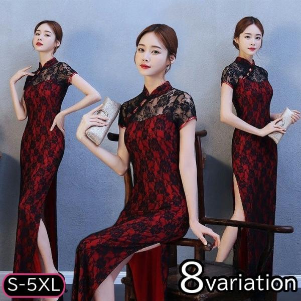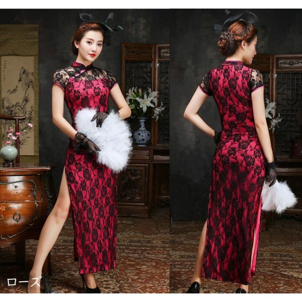 チャイナドレス ロング丈 サイドスリット 半袖 レディース 女性 婦人 タイトワンピース 大きいサイズ ゆったり コスプレ シースルー レース 透け感