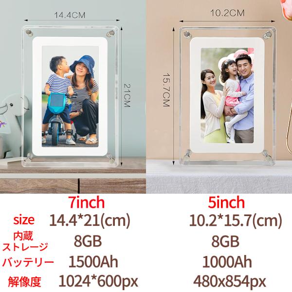 【展示品】充電式 デジタルフォトフレーム 5インチ 7インチ 写真立て アルバム アクリル 動画フレーム 8GBバッテリ プレゼント 両親 卒業式 おもいでばこ