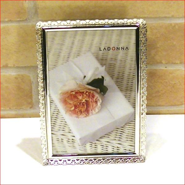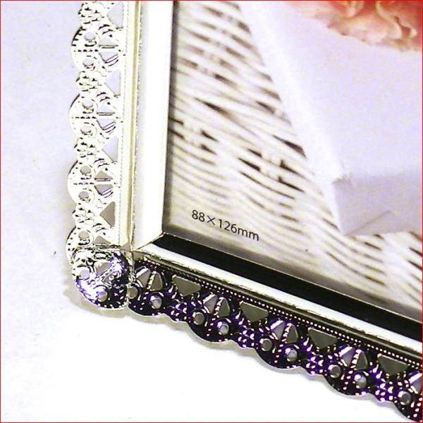 写真立て フォトフレーム ハガキサイズ シルバー アラベスクフレーム 真鍮 真ちゅう レース 大人 女子 結婚祝い フォトスタンド 0811-75