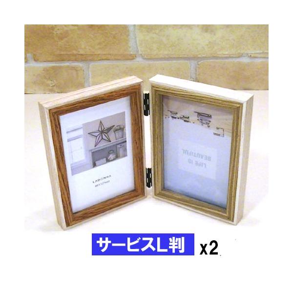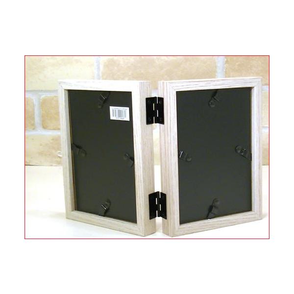 フォトフレーム サービス判(L判) 2枚 縦向き 写真立て 木製フォトフレーム 2蓮・アイボリー&ブラウン 0817-88