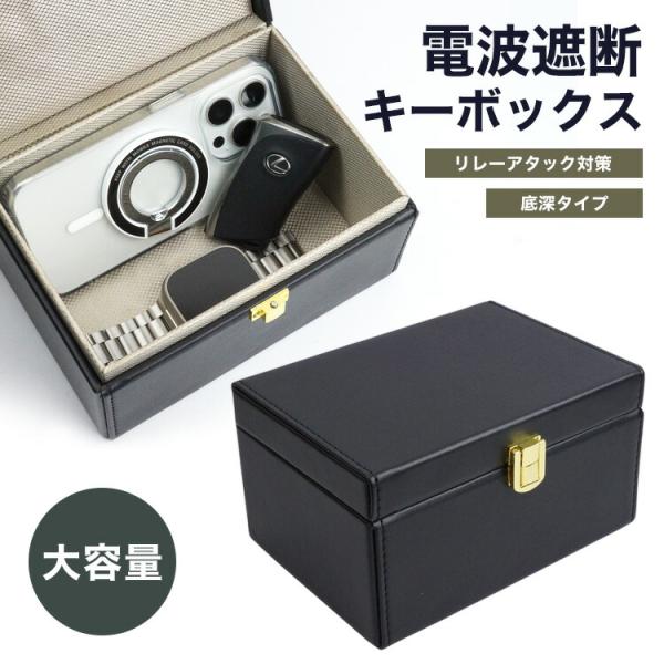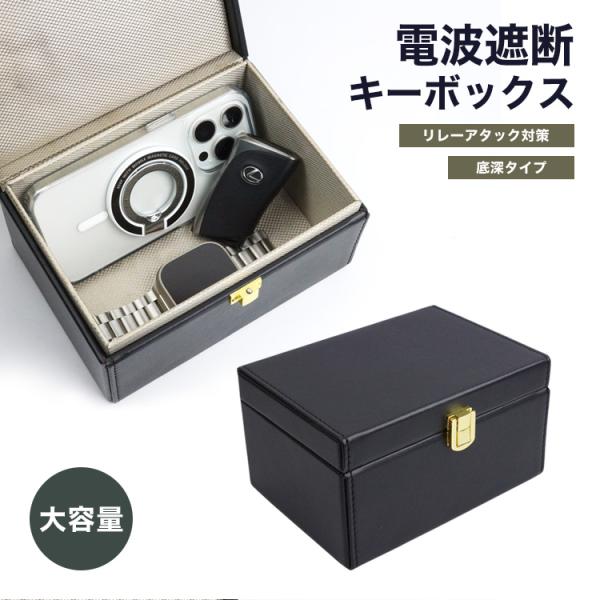 電波遮断 キーボックス リレーアタック対策 スマートキー 防止 大容量 PUレザー スキミング防止 幅広 カー用品 セキュリティ