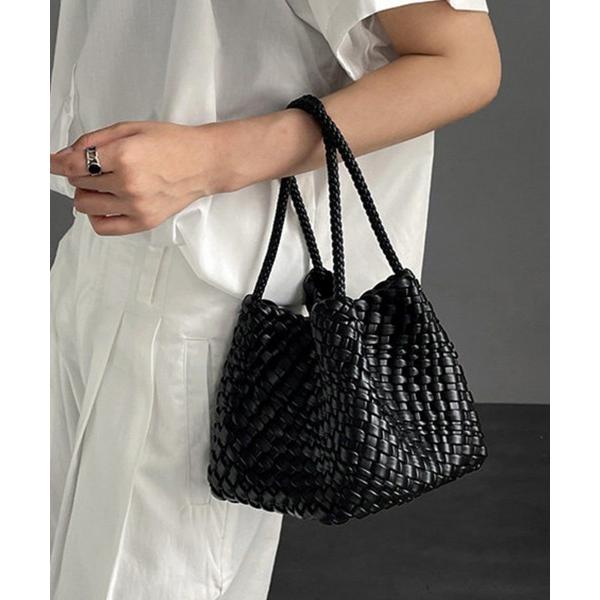 ハンドバッグ 編み込みデザインハンドバッグ×ミニバッグ付き