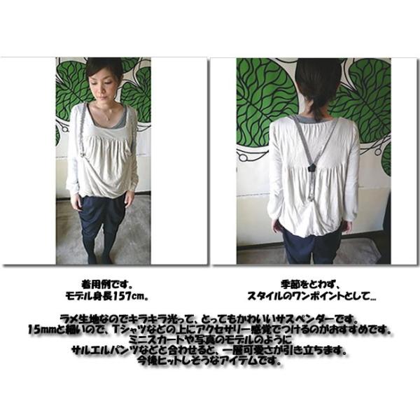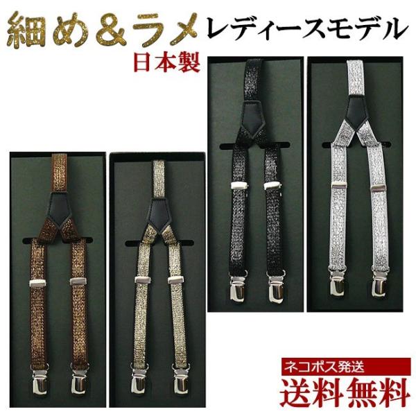 サスペンダー レディース 細め 15mm おしゃれ カジュアル ラメ生地 日本製