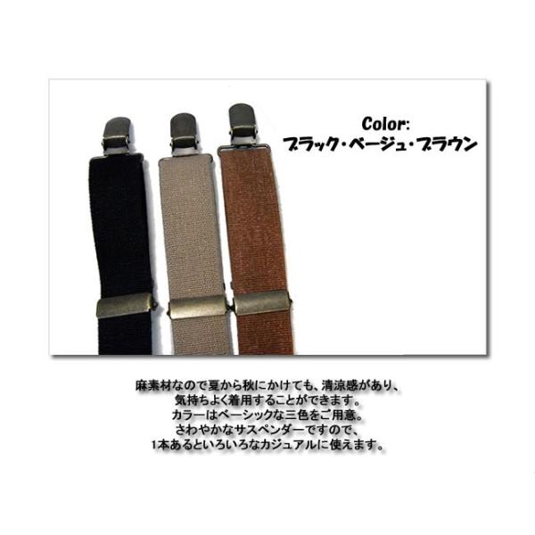 サスペンダー 3点留め Y型 レディース おしゃれ カジュアル 麻素材 日本製