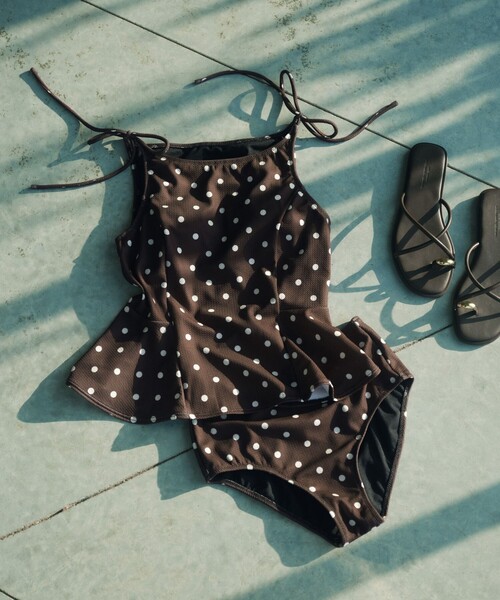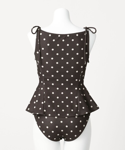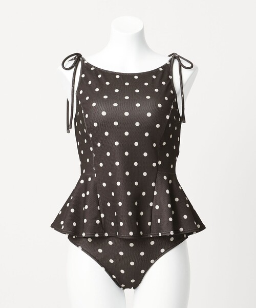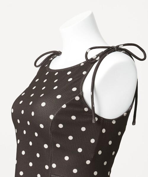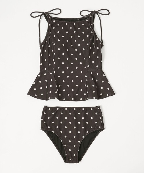 水着 ハイネックWリボンフレア&ショーツ ドット柄 ブラック スイムウェア / 水着 レディース