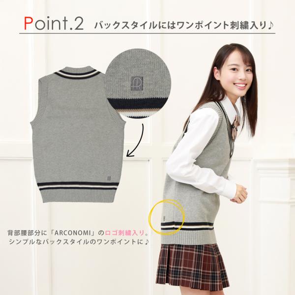 制服ベスト 女子 スクールベスト 女子 夏 CONOMi 全3種類 制服 スクール ニット コットン 綿 学生服 高校 中学 学校 通学 ネイビー 紺 グレー 白 ホワイト 男子
