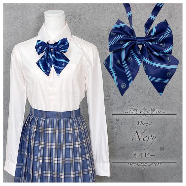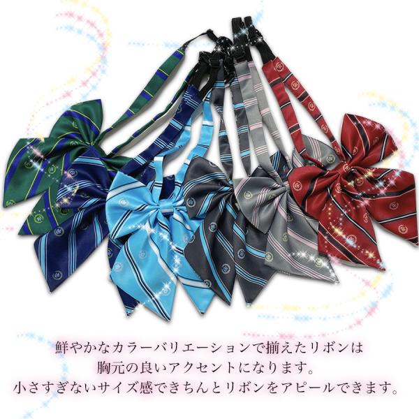 スクールリボン ストライプ エンブレム柄 アジャスター ホック有 半光沢 シルク調 制服 学生 女子高生 中学校 高校生 学校 コスプレ 文化祭 紺 赤 緑