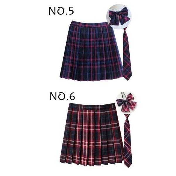 制服 高校生 学生制服スカート 3点セット 蝶結び+ネクタイ+スカート35タイプ チェック柄プリーツスカート(スクール・制服) 女子高生スカート レディース
