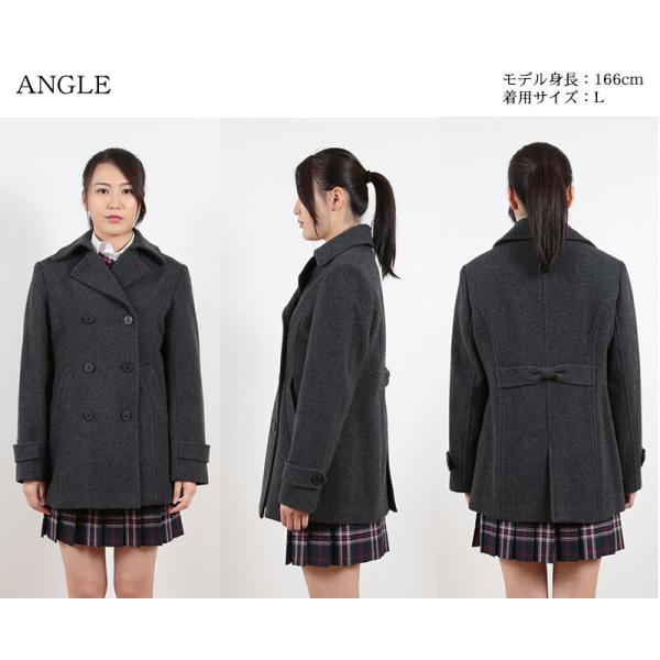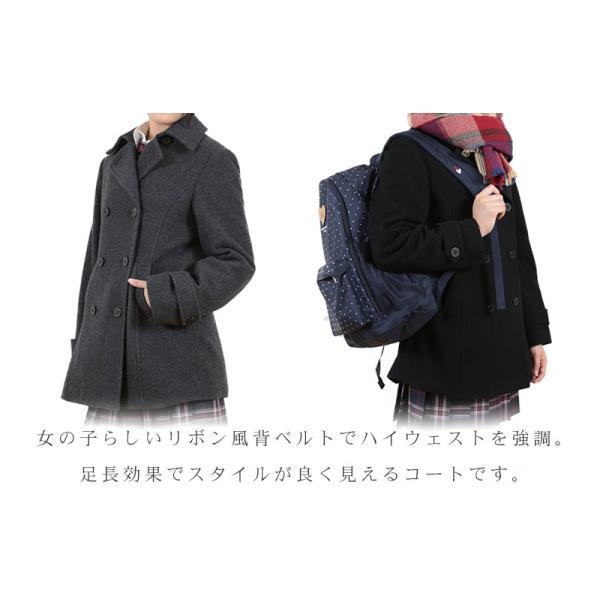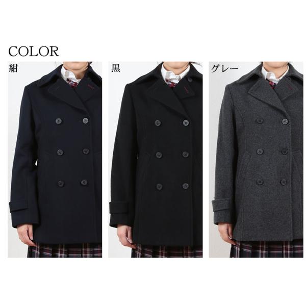 スクールコート 女子 Pコート 高校生 中学生 紺 黒 グレー S〜LL (ピーコート レディース ネイビー ブラック 学生 コート かわいい ウール) (送料無料) (取寄せ)