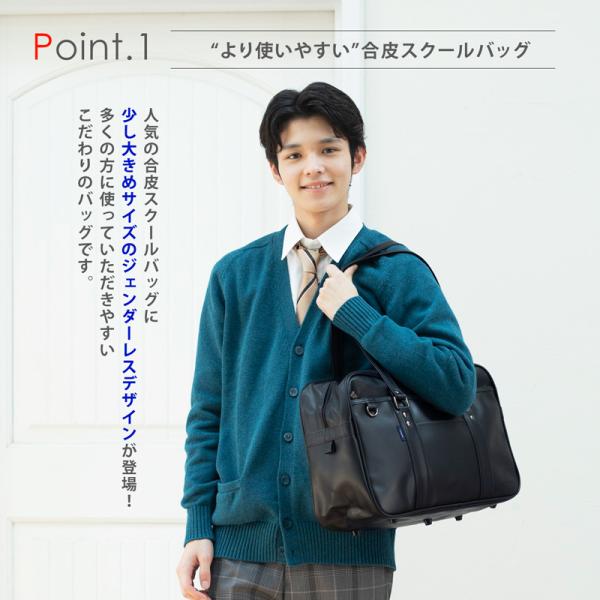 スクール バッグ 合皮 スクバ 男子 雨に強い CONOMi 革 高校生 学生 学校 ブラック 黒 ユニセックス 大きめ シンプル メンズ