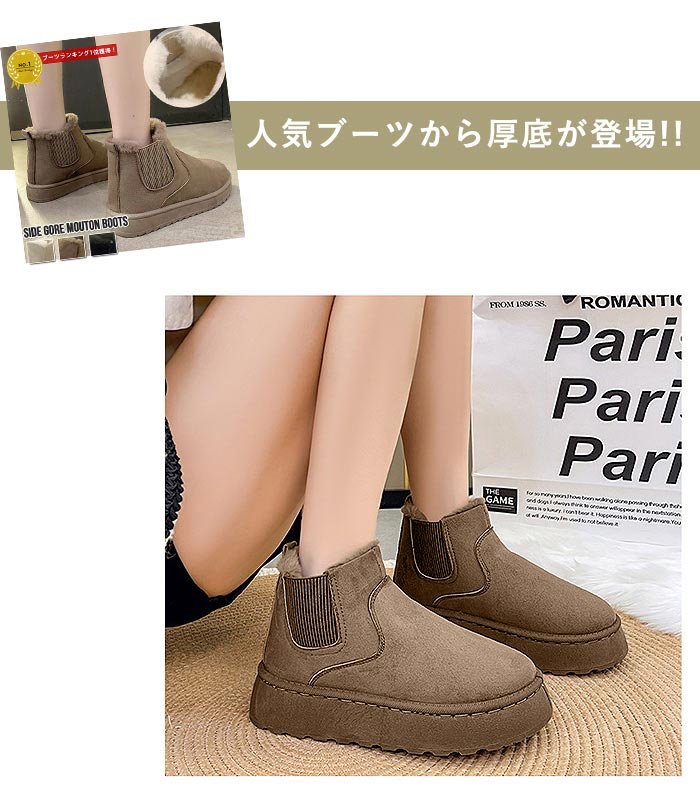 1533円 3点購入クーポンで! ムートンブーツ ブーツ サイドゴア 厚底 レディース 冬 黒 おしゃれ 30代 40代 ショート ボア ファー シューズ 靴 極暖^bo-931^