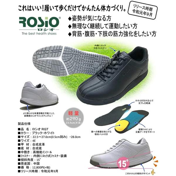 健康シューズ ROSIO ロシオ RGT ホワイト かかとのないウォーキングシューズ 15度 腰痛 ひざ痛 健康 シェイプアップ 幅広 健康シューズ