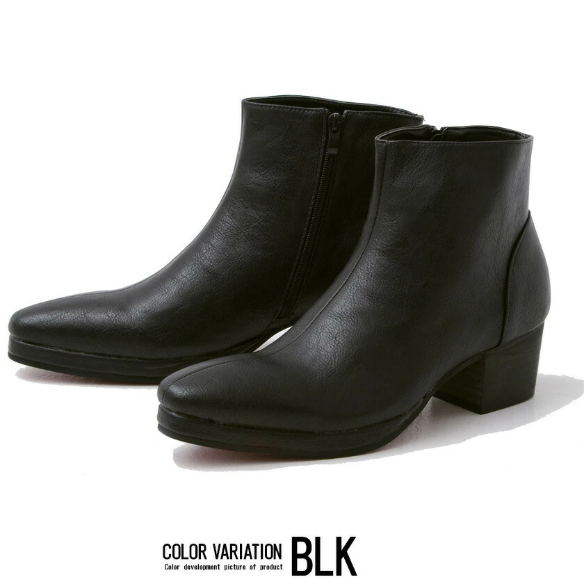 メンズ ブーツ 靴 ブランド おしゃれ きれいめ ハイヒール サイドジップ 美脚