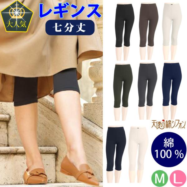 7分丈 レギンス 天使の綿シフォン 新色 綿100% スパッツ レディース ダブルガーゼ コットン 春夏 秋冬 保温 母の日 レディース 99087