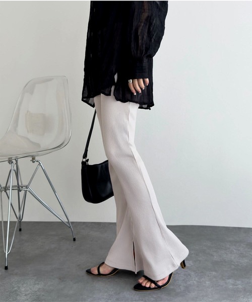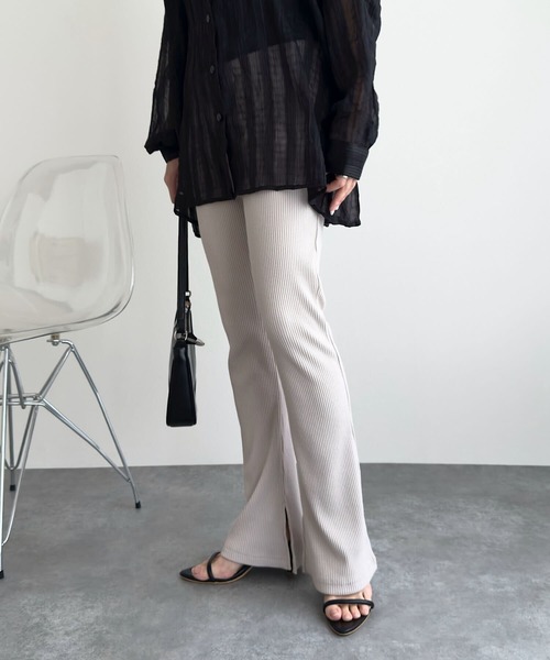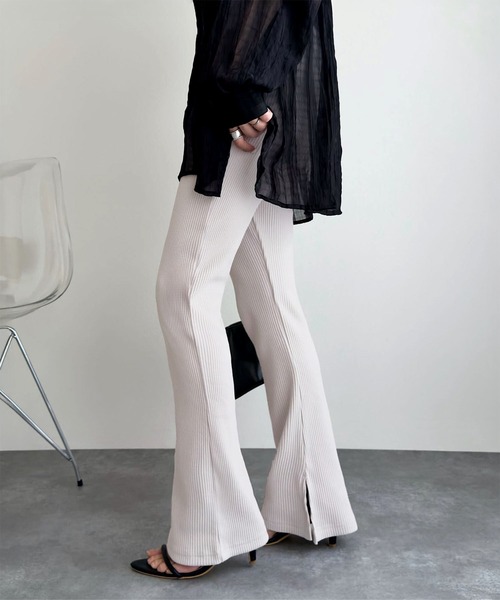 レギンス スパッツ 低身長・高身長サイズあり 選べる3丈 サイドスリットリブフレアレギンスパンツ レディース