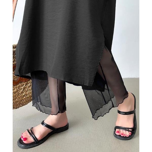 レギンス スパッツ ほんのり素肌見せ シアーレギンス メローデザイン ワイドレギンス チュール シアー レギンス レイヤード 夏 レディース