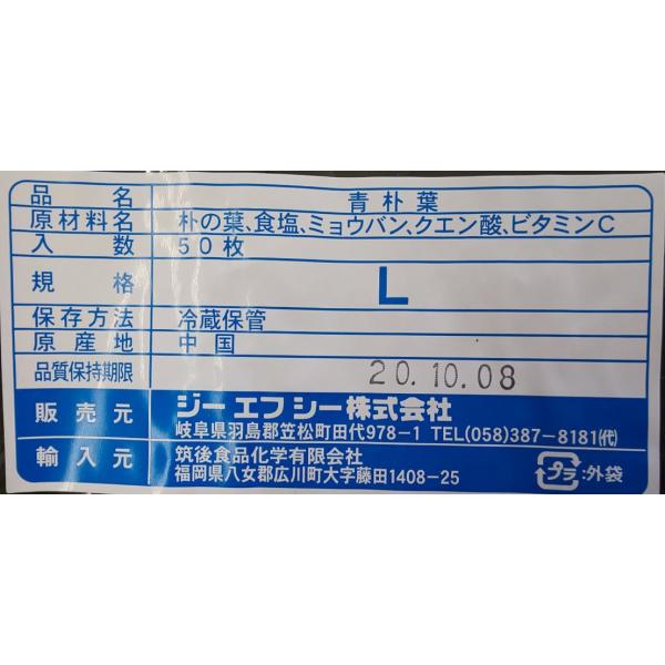 中国産 青朴葉(L)真空 50枚x16P(P1180円税別)業務用 ヤヨイ 他にMとSサイズの取り扱いあります。
