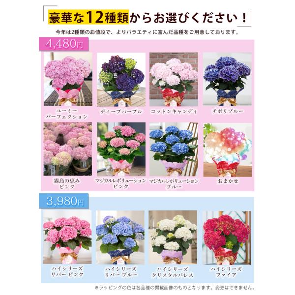 母の日 2026 あじさい プレゼント ギフト 12種類から選べる アジサイ5号サイズ 4F〜5F以上 紫陽花 鉢植え こだわりラッピング 全国送料無料