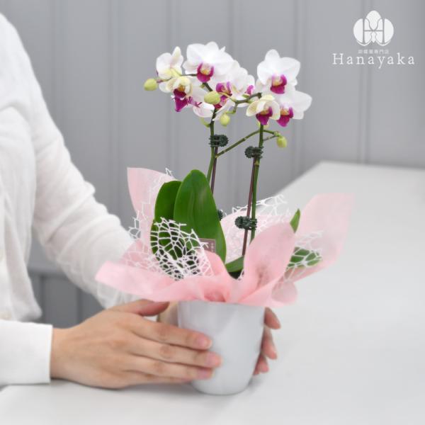 胡蝶蘭 ※現在2分咲き〜 カララL(ミニミディ) 2本立ち ラッピング、カード無料!鉢花 ギフト 誕生日 プレゼント 開店祝い お祝い お供え※KG