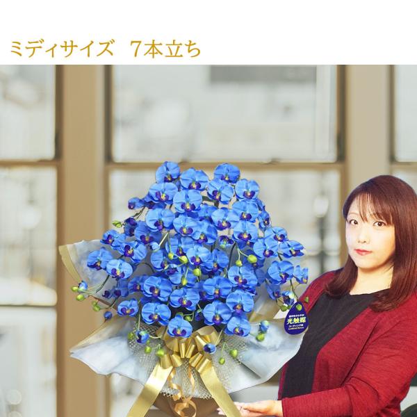 青い胡蝶蘭 光触媒 7本立ち 大輪 豪華 ミディサイズ 法人ギフト 周年祝い 社長就任祝い ブルー フェイクフラワー 送料無料