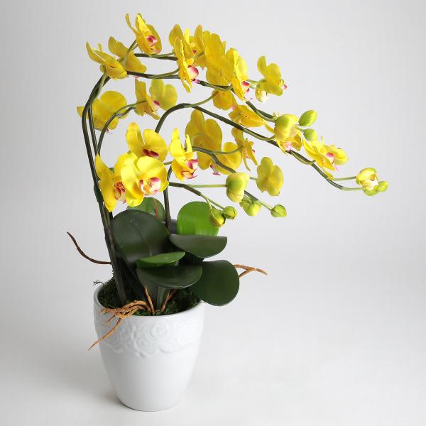 光触媒 花 胡蝶蘭 小輪 3本立 黄色 お祝い 造花 御祝 風水 金運 ギフト イエロー 母の日 誕生日 発表会 新築 開店 祝
