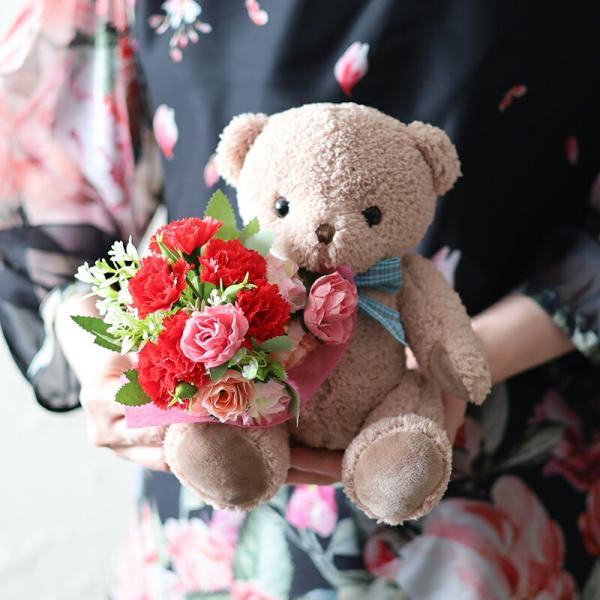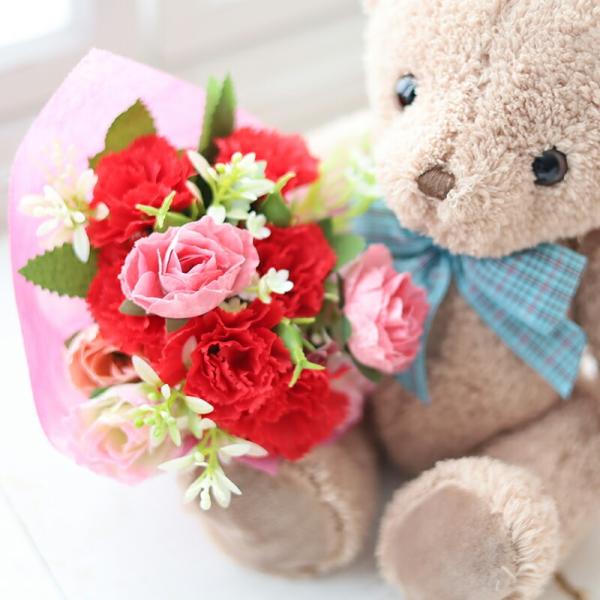 母の日 ギフト 早割 花 プレゼント カーネーション 80代 70代 80代 アレンジメント 花 祖母 孫から 実用的 花以外 花束プレゼント ベア クマちゃんセット