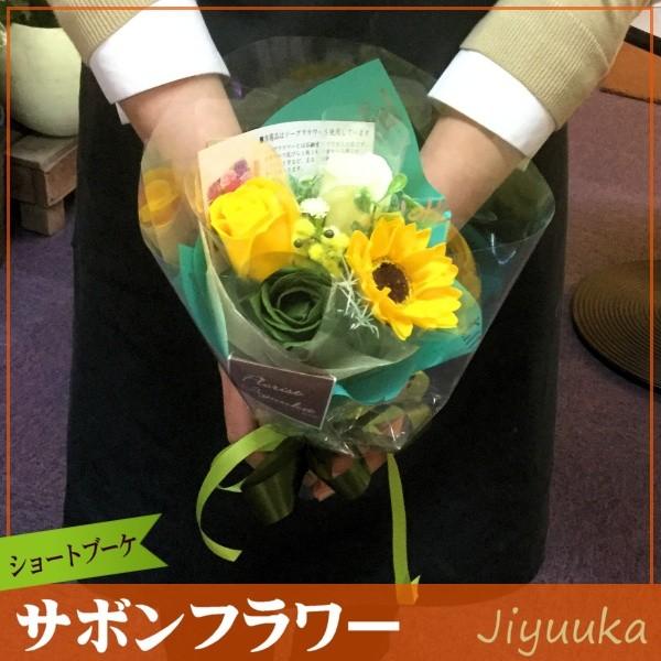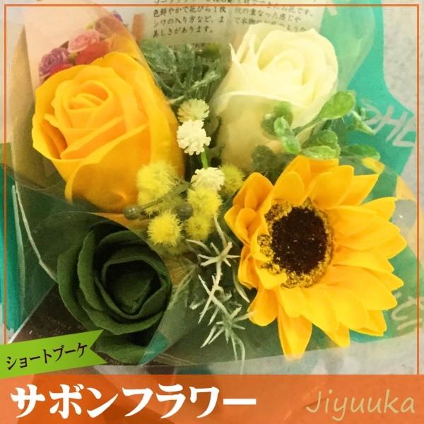 ソープフラワー サボンフラワー 花束 ギフト ショート ブーケ ヒマワリ入 4本 バラ 贈り物 卒園 卒業 入園 入学 発表会 誕生日 お返し ミニ プチ プレゼント
