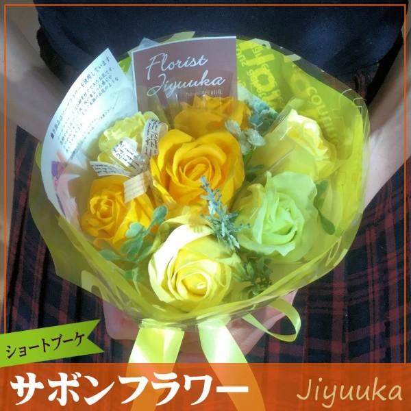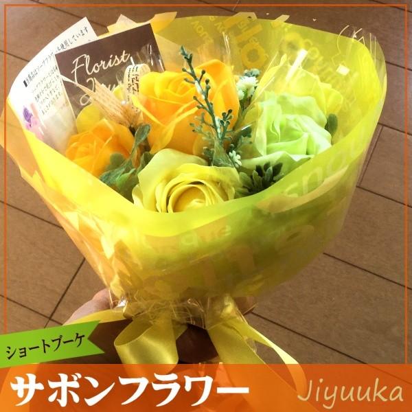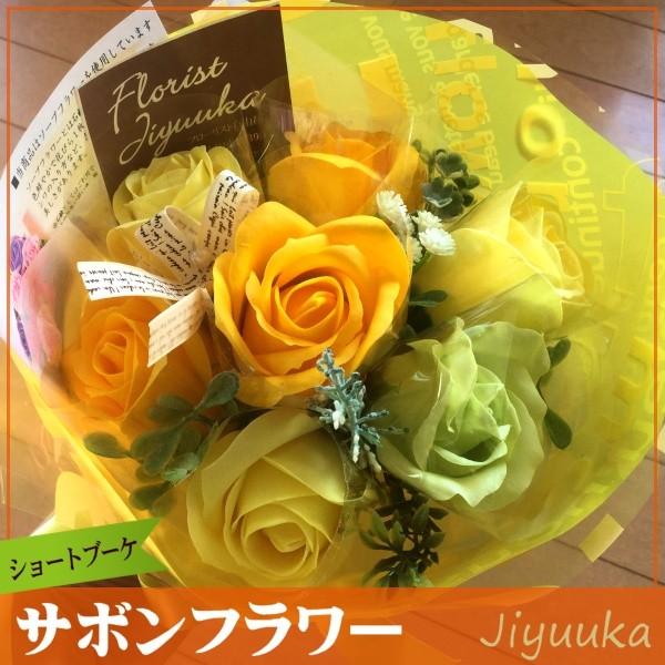 ソープフラワー サボンフラワー ギフト 花束 ショート ブーケ イエロー 7本 バラ 贈り物 卒園 卒業 入園 入学 発表会 誕生日 お祝 お返し ミニ プチ プレゼント