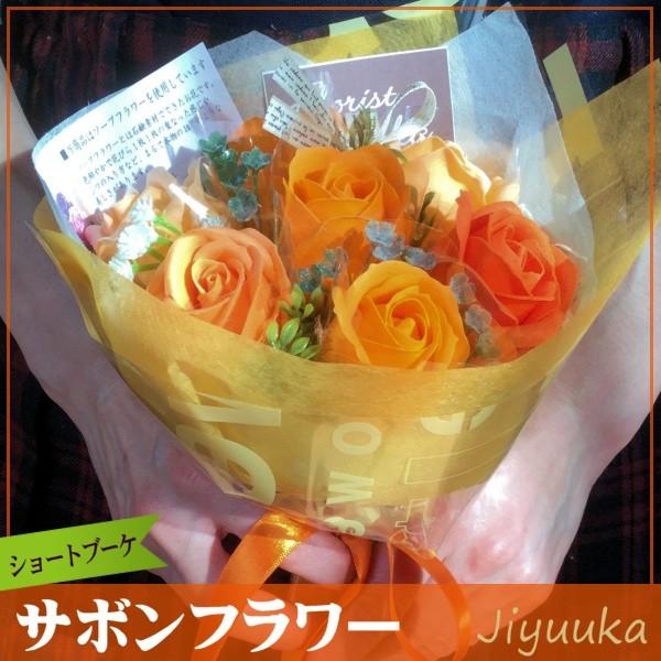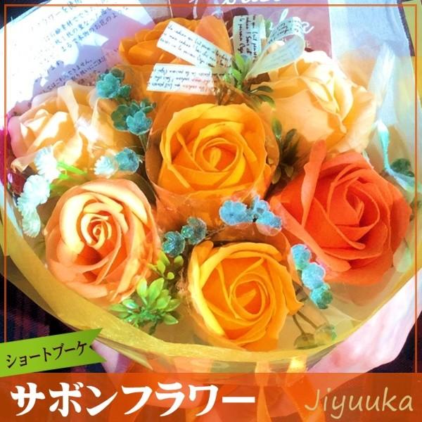ソープフラワー サボンフラワー ギフト 花束 ショート ブーケ オレンジ 7本 バラ 贈り物 卒園 卒業 入園 入学 発表会 誕生日 お祝 お返し ミニ プチ プレゼント