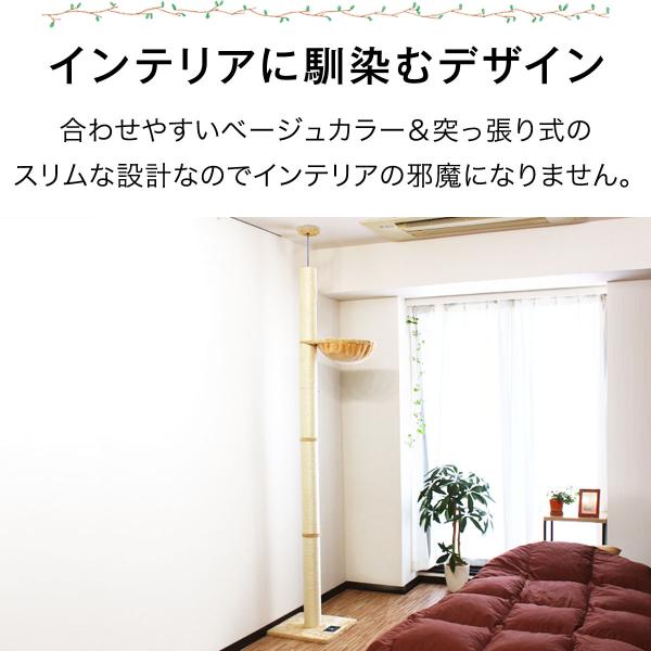 キャットツリー タワー 麻ひも 突っ張り ハンモック付き 全高240~255cm 直径10cm シニア 運動不足 猫 木登りタワー 木登りキャットポール 1年保証 送料無料
