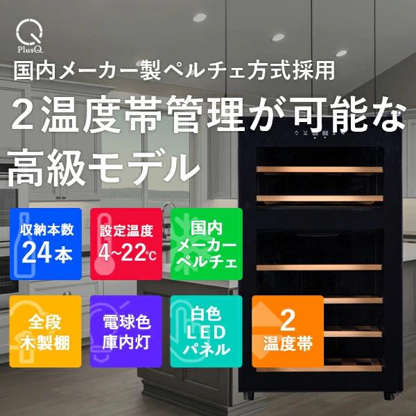 ワインセラー 家庭用 小型 24本 静音設計 木製棚 2温度 上下 温度別 PlusQ プラスキュー ペルチェ BWC-024P 爆買