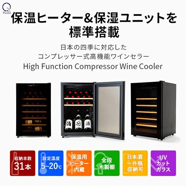 ワインセラー コンプレッサー式 31本 家庭用 小型 日本酒 一升瓶 収納可 木製棚 DWC-031C PlusQ プラスキュー 爆買