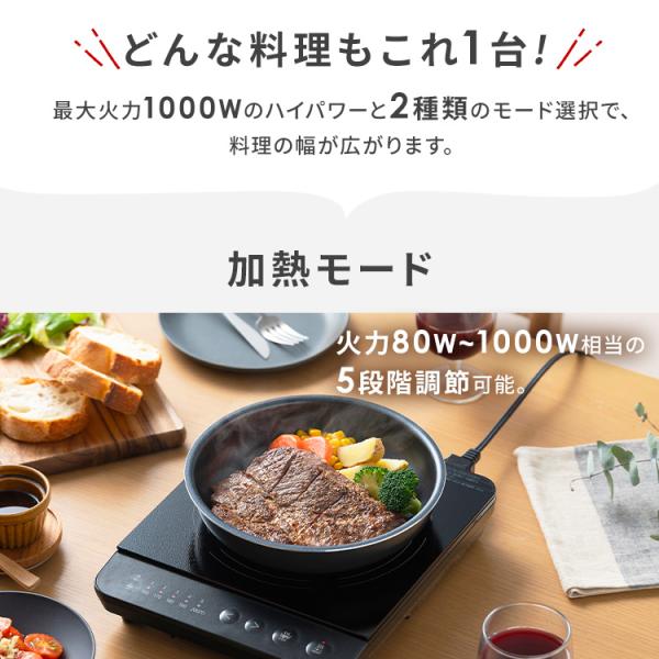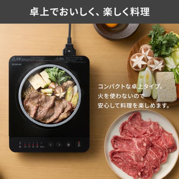 IHクッキングヒーター 卓上 IHコンロ 1口 卓上IH 安全機能付き お手入れ簡単 アイエイチコンロ 電磁調理器 アイリスオーヤマ 1000w IHK-TA2P-B *