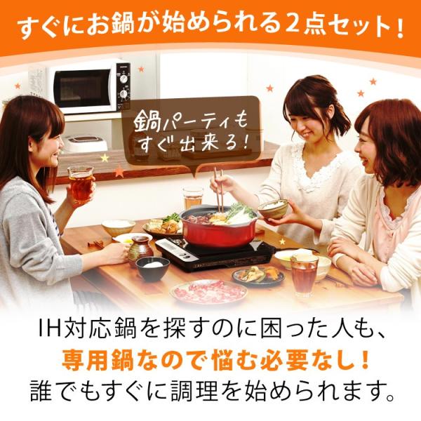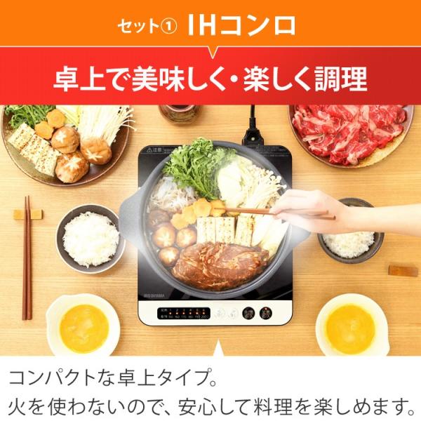 IHコンロ 鍋 セット 卓上 IHクッキングヒーター 1口 工事不要 1400W IHKP-3524-B/R ブラック/レッド アイリスオーヤマ