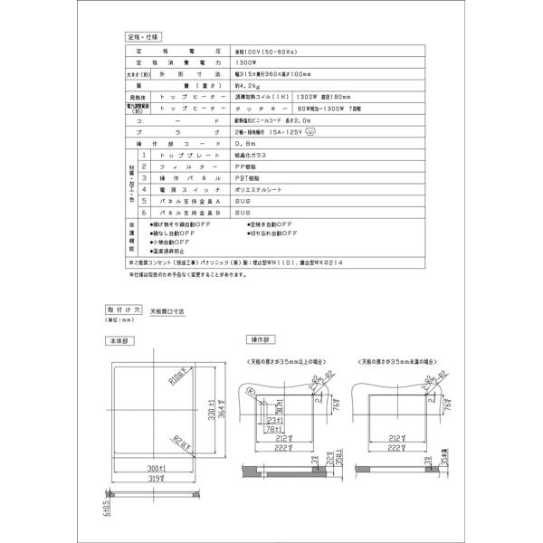 【在庫有り】【KZ-F11B】パナソニック 業務用IHクッキングヒーター 1口ビルトインタイプ 100V panasonic