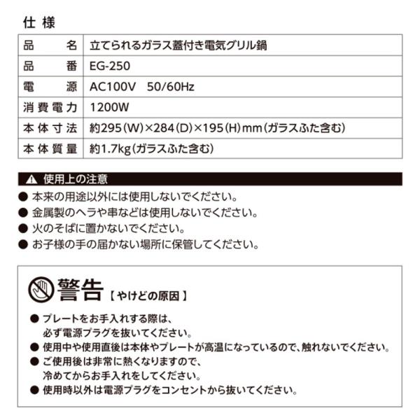電気グリル鍋 立てられるガラス蓋付き AZUMA アズマ 煮込む 炒める 焼く 深鍋 容量2L 2-3人用 水洗い ダイヤル式 高火力1200W ブラック EG-250 ◆宅