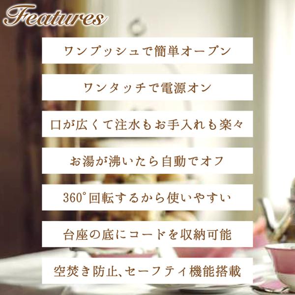 電気ケトル おしゃれ ステンレス電気ケトル 1.2L ワンプッシュオープン 口が広くて注水楽々自動電源OFF 空焚き防止 ステンレス製 台座360°回転 F1319