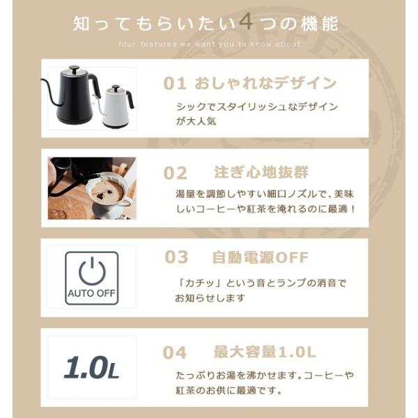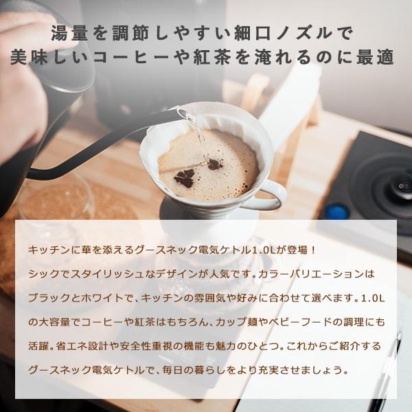 電気ケトル コーヒー グースネックケトル 1リットル 注ぎやすい グースネック ハンドドリップ 自動スイッチOFF 空焚き防止機能 KTK-377